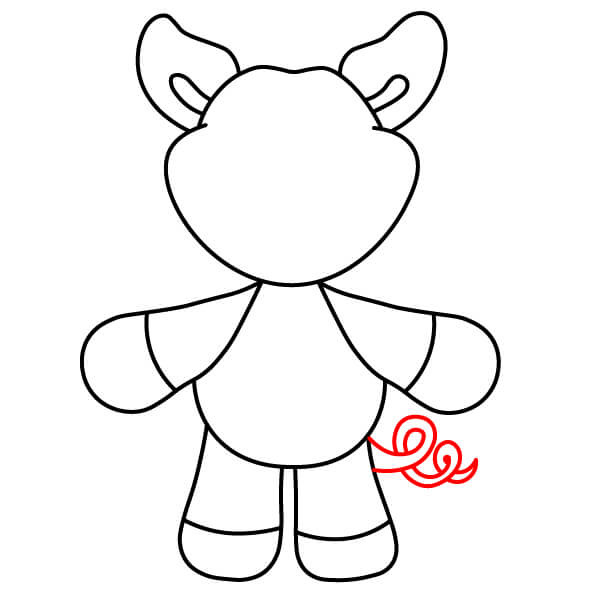 Dessinez la petite queue sur le côté du corps. Elle ressemble à un simple “B” incurvé ou à une forme pliée.