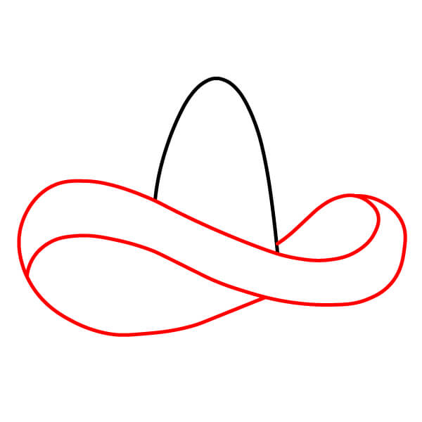 À partir du haut du bord, tracez deux courbes ascendantes qui se rejoignent en une pointe arrondie, formant ainsi la calotte du sombrero.