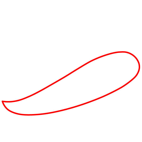 Dessinez une longue courbe douce reliant les coins inférieurs du bord. Cela représente le bord extérieur du bord, vu légèrement de dessus.