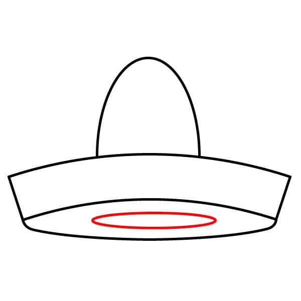 Commencez par dessiner un ovale allongé en forme de croissant. Il formera le contour de base du large bord recourbé du sombrero.