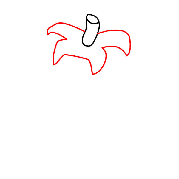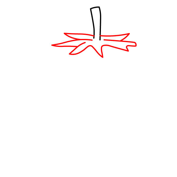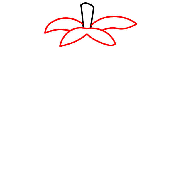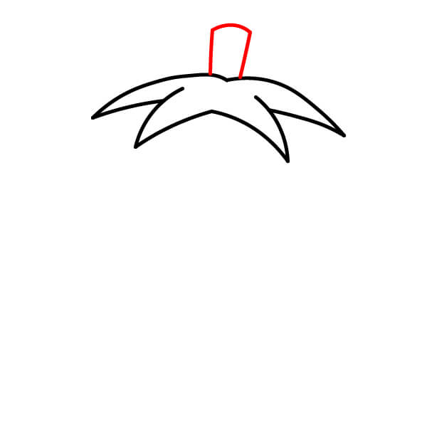 Dessinez un petit rectangle incurvé au-dessus du feuillage. Ce sera la tige de la tomate.