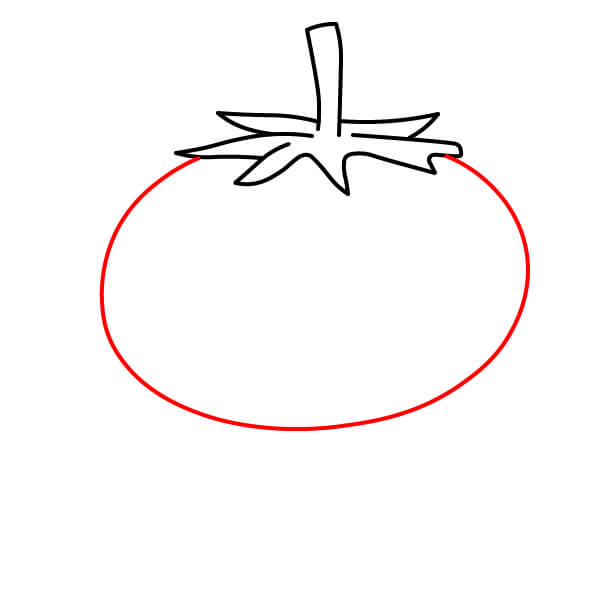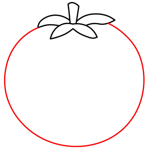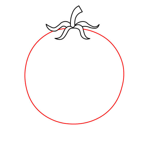Dessinez des bords dentelés autour de la tige pour former le calice de la tomate.