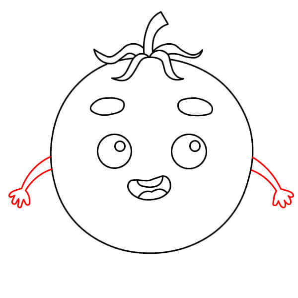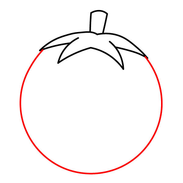 Dessinez un grand cercle sous le feuillage pour former le corps rond de la tomate.