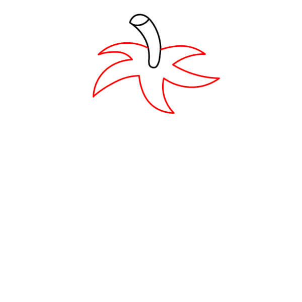 Commencez par dessiner cinq feuilles pointues au-dessus de la tomate. Elles formeront son feuillage.