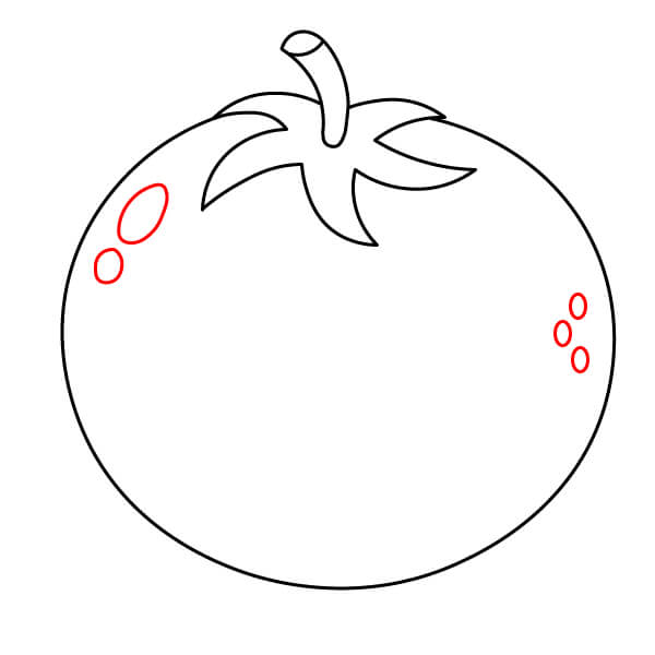 Ajoutez quelques petits ovales pour représenter les gouttelettes d’eau sur la tomate.