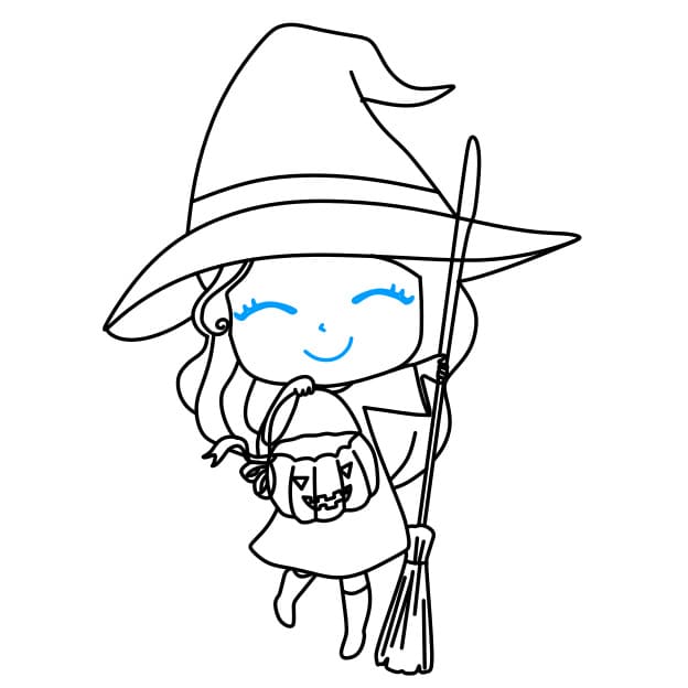 Étape 8: N’oubliez pas de dessiner un beau visage pour la petite sorcière